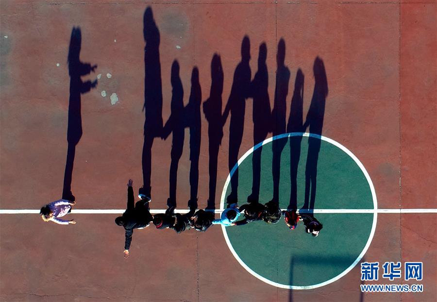 2019年12月26日,后池村新愚公小学师生在做游戏(无人机照片)。新华社记者 王晓 摄
