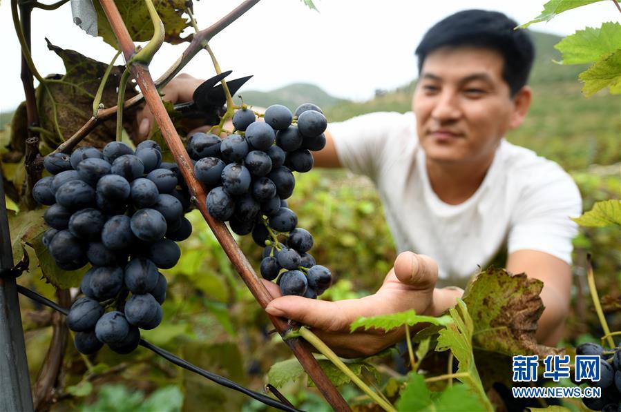 2019年9月17日,游客在后池村采摘葡萄。新华社记者 王晓 摄