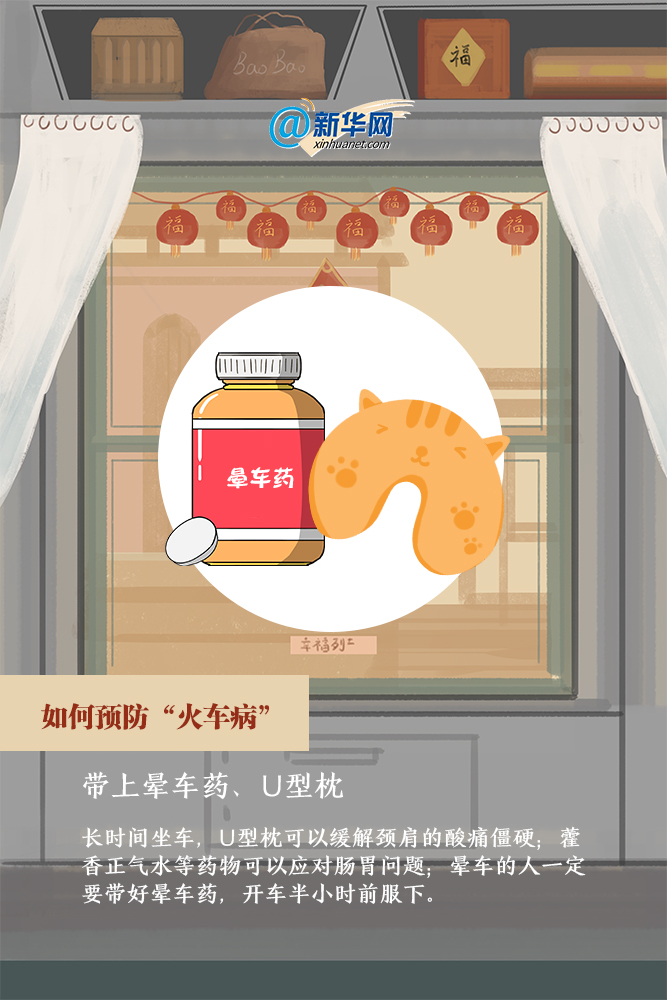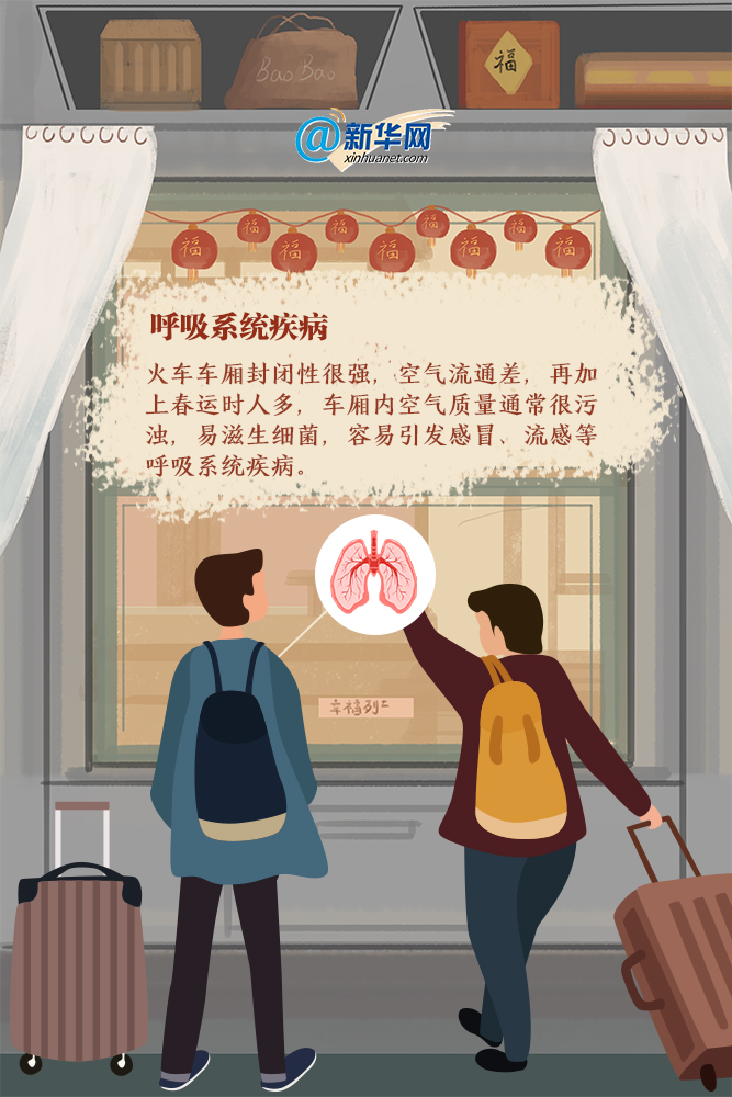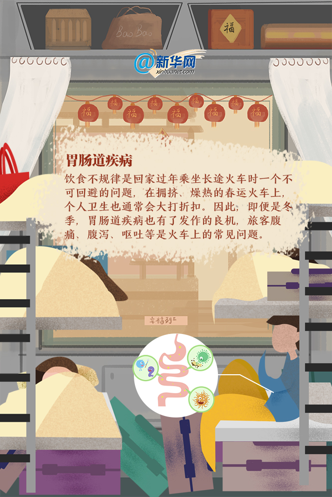 一年一度的"大迁徙"即将开始,很多人陆续踏上了旅途。由于路途遥远、舟车劳累、车厢人多拥挤、空气不畅等原因,春运途中也是各类疾病的高发期。许多人不慎中招。晕车、流感、腹泻等等这些都是“火车病”,快戳图看看如何防范这些疾病,健健康康地回家吧。