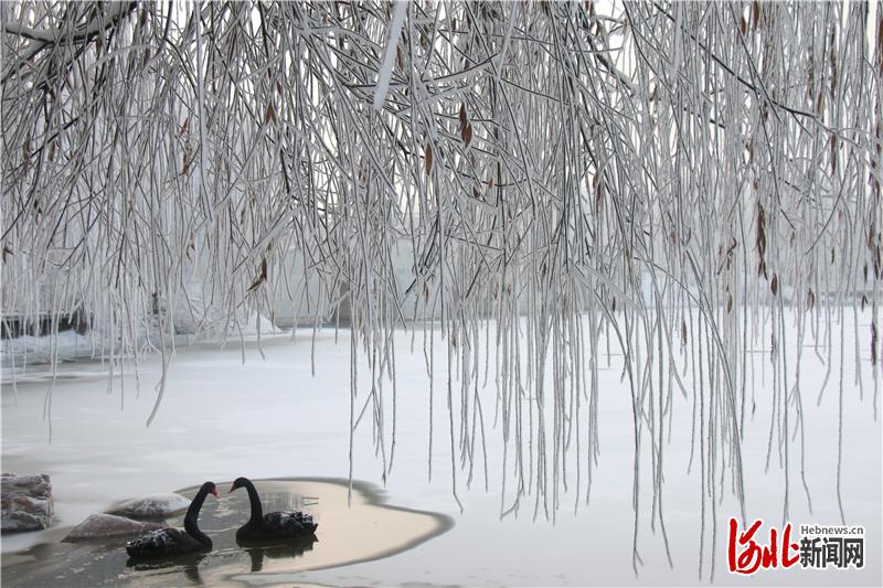 1月8日,河北省邯郸市广平县天鹅湖公园出现雾凇景观。通讯员 程学虎摄