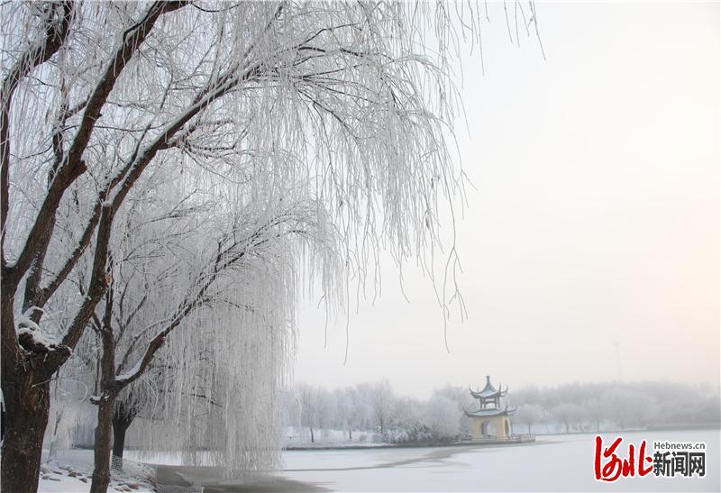 1月8日,河北省邯郸市广平县天鹅湖公园出现雾凇景观。通讯员 程学虎摄