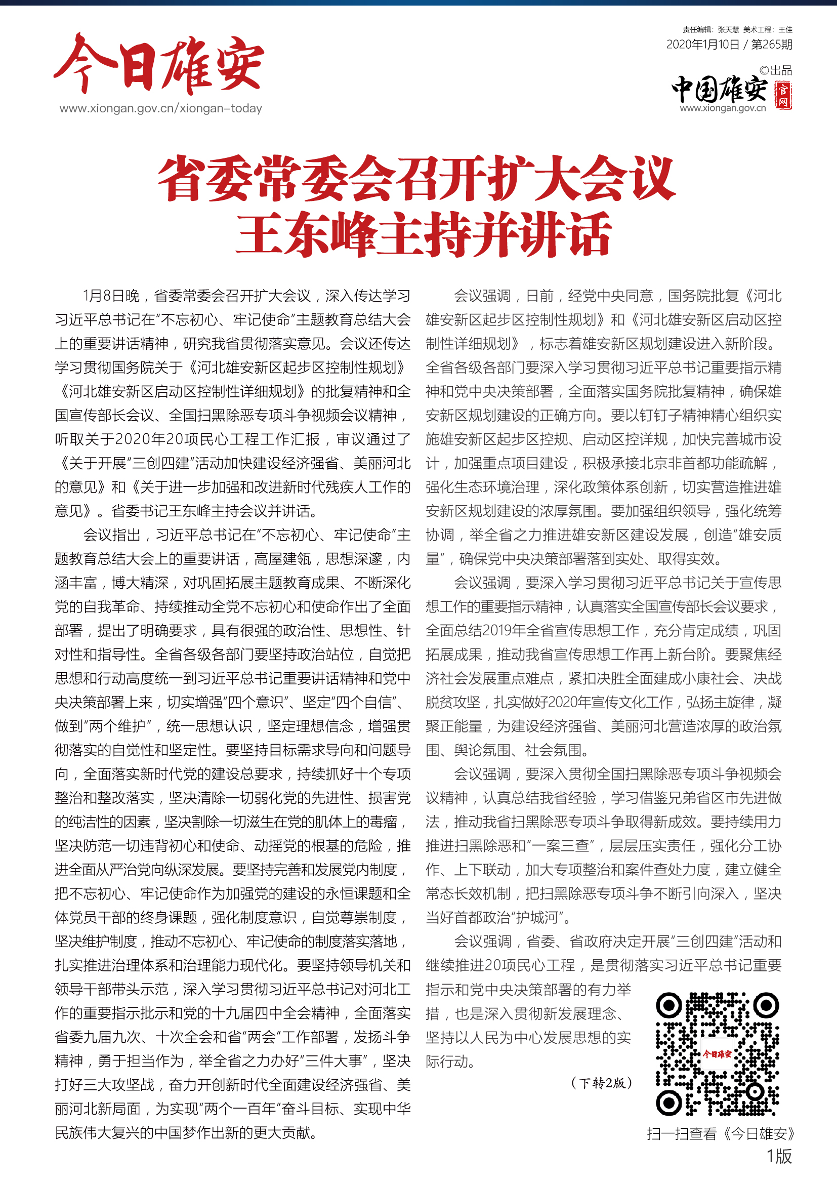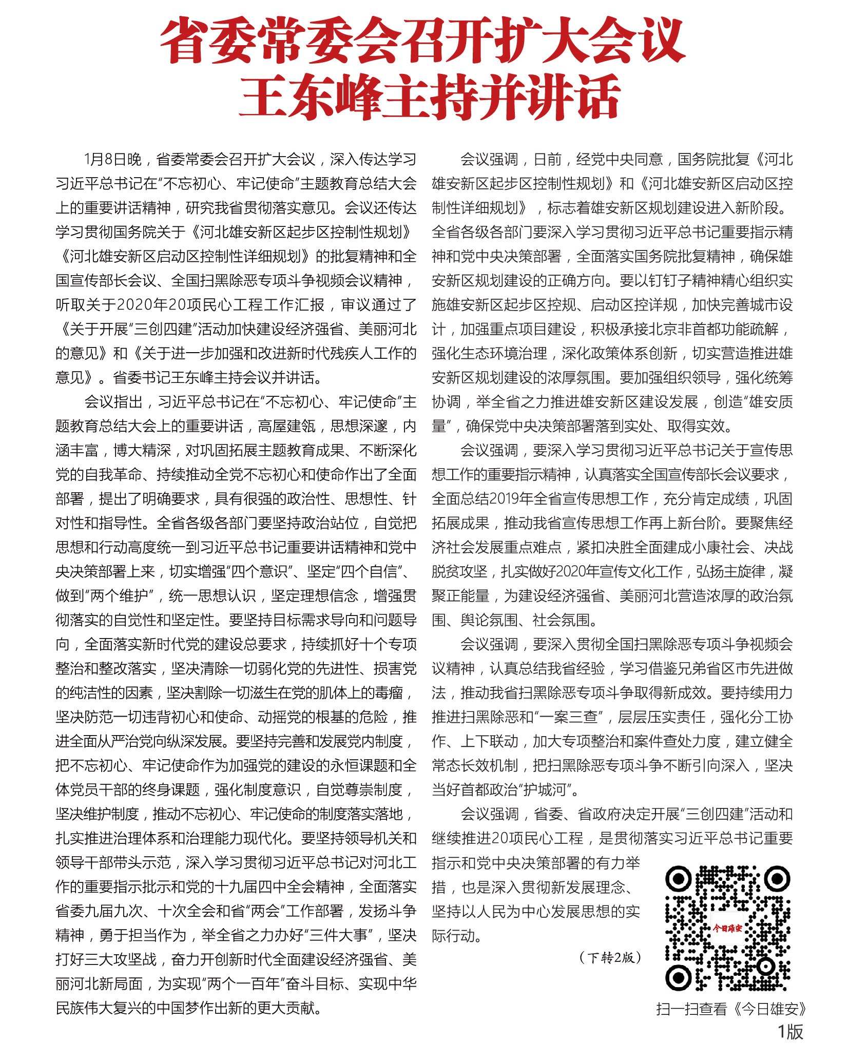 河北省委常委会召开扩大会议,深入传达学习习近平总书记在“不忘初心、牢记使命”主题教育总结大会上的重要讲话精神,研究我省贯彻落实意见。王东峰主持并讲话。