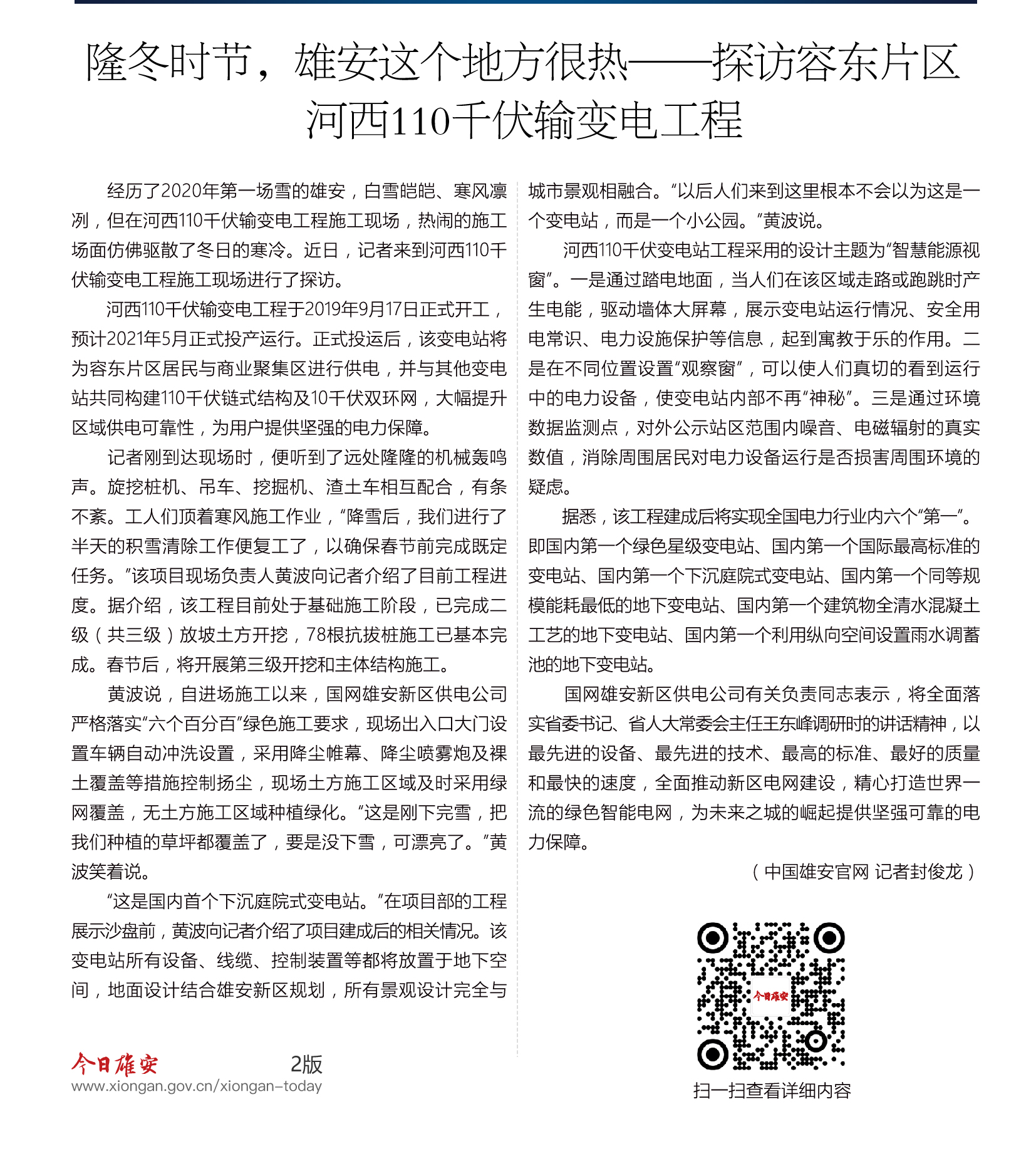 2020年初雪过后,雄安新区重点项目建设工地上,仍是一派火热繁忙的景象。新区建设者们冒着严寒,高标准高质量高效率推进工程建设。
