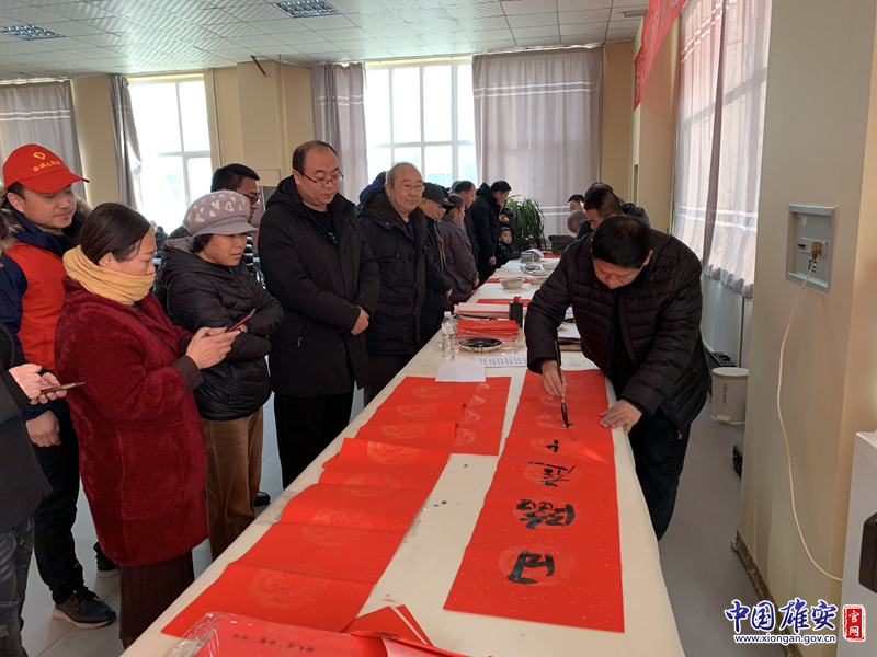 来自北京书法家协会、容城县书法家协会的书法家们纷纷挥毫泼墨,写春联、送祝福。“雄安景气日异新 华夏春意无限好”“自信雄安随梦起 从容盛世伴春来”“瑞雪红梅装点雄安风物美 欢歌劲舞合拍华夏岁时新”……一幅幅饱含雄安特色,寓意美好生活的春联被送到征迁户、贫困户、道德模范代表手中,赢得大家一致称赞。