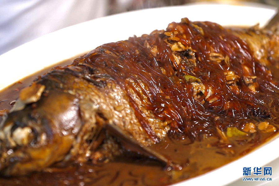 刚出锅的白洋淀炖大鱼。马梦迪 摄