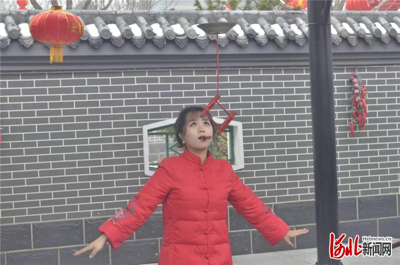 据了解,这个小院展示的是吴桥杂技的传承,不仅是杂技学校,师传徒、父传子,最重要的是她们一家人所用的道具就是日常生活用品,像锅碗瓢盆,桌椅板凳,都能够信手拈来。