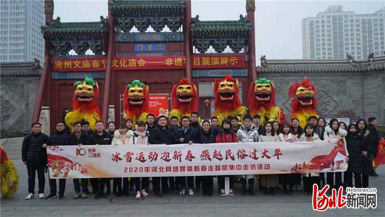 咚咚锵,咚咚锵!伴随着动感热烈的鼓点,刘吉舞狮时而闪转腾挪,时而腾空跃起,时而顶腰扭动,把雄狮那股刚劲威猛表现得惟妙惟肖……1月18日,“冰雪运动迎新春 燕赵民俗过大年”2020年河北网络媒体新春走基层走访团来到沧州文庙,一起感受非遗的魅力和大运河畔浓浓的年味儿。