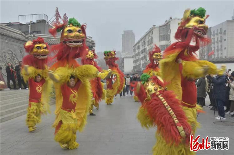 沧州文庙刘吉舞狮正在表演。记者杜正杨摄