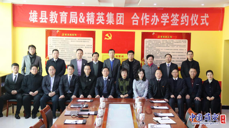 1月19日上午,雄安新区雄县教育局与精英集团合作办学签约仪式在雄县白洋淀高级中学举行。雄安新区雄县教育局供图