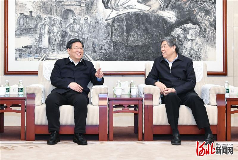 1月20日,省委书记、省人大常委会主任王东峰在北京与中国国家铁路集团有限公司董事长、党组书记陆东福进行座谈交流。河北日报记者赵威 摄