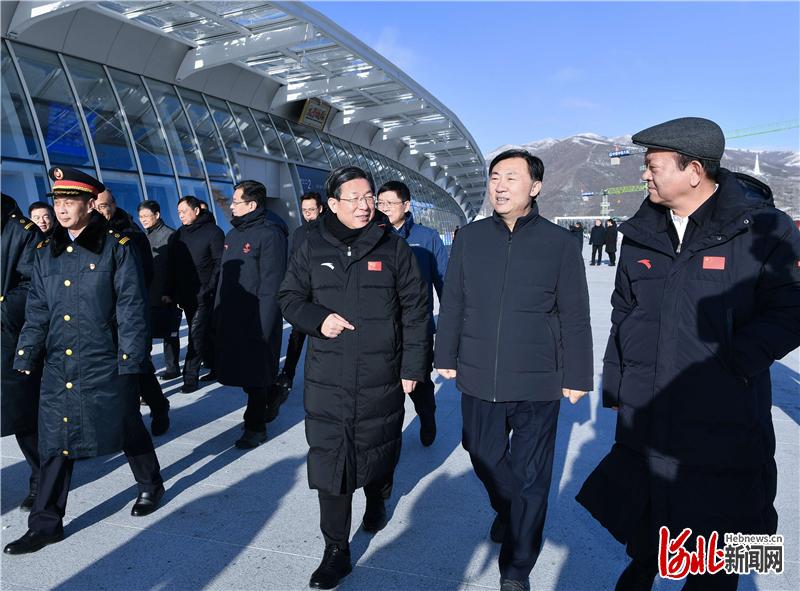 座谈交流后,王东峰、许勤、杨宇栋从京张高铁始发站——北京北站乘车前往张家口市崇礼区调研。这是在崇礼区太子城站,王东峰、许勤、杨宇栋考察车站建设运营情况。河北日报记者赵威 摄