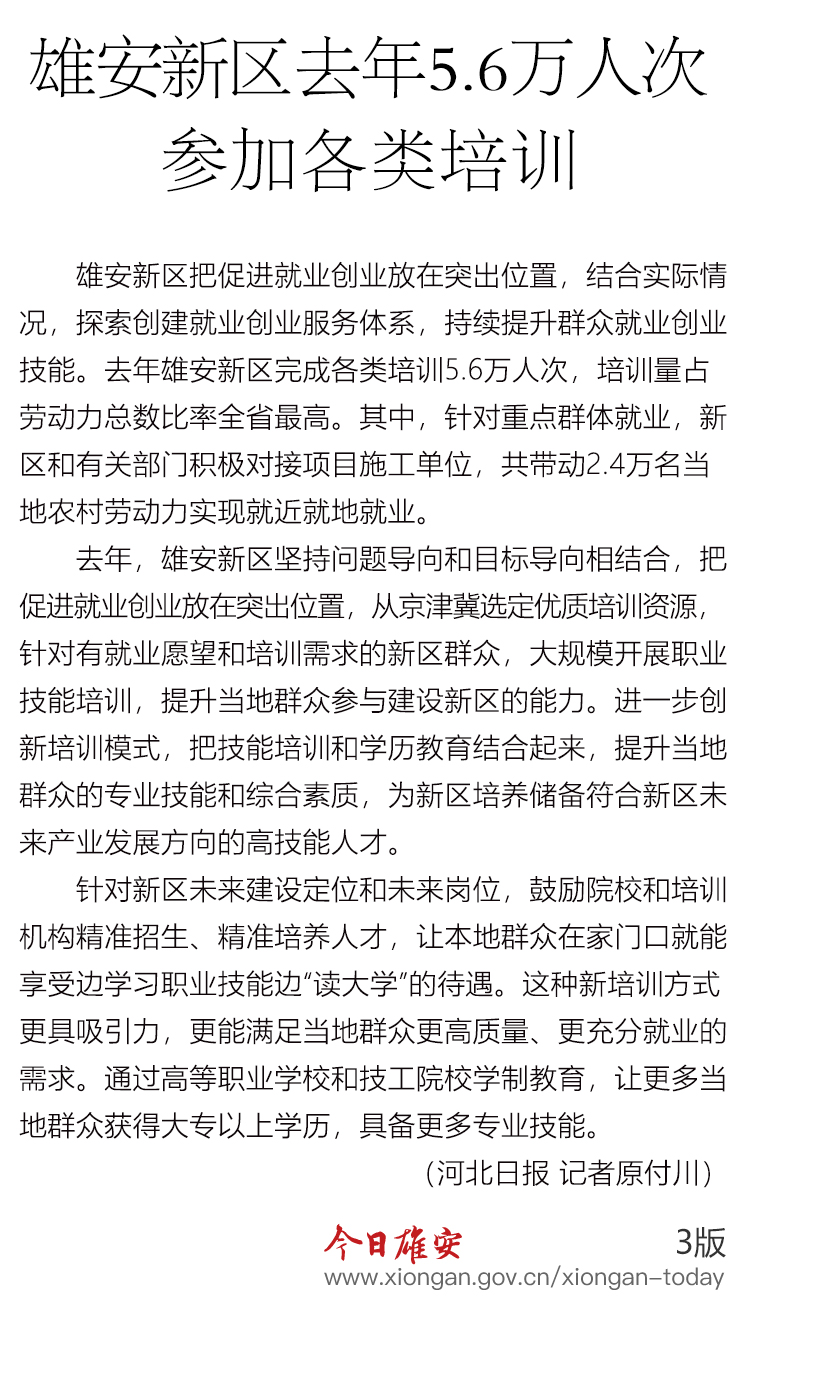 其中,针对重点群体就业,新区和有关部门积极对接项目施工单位,共带动2.4万名当地农村劳动力实现就近就地就业。