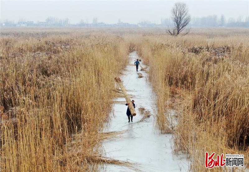 1月5日,雄安新区白洋淀,村民正在收割芦苇。记者赵杰摄