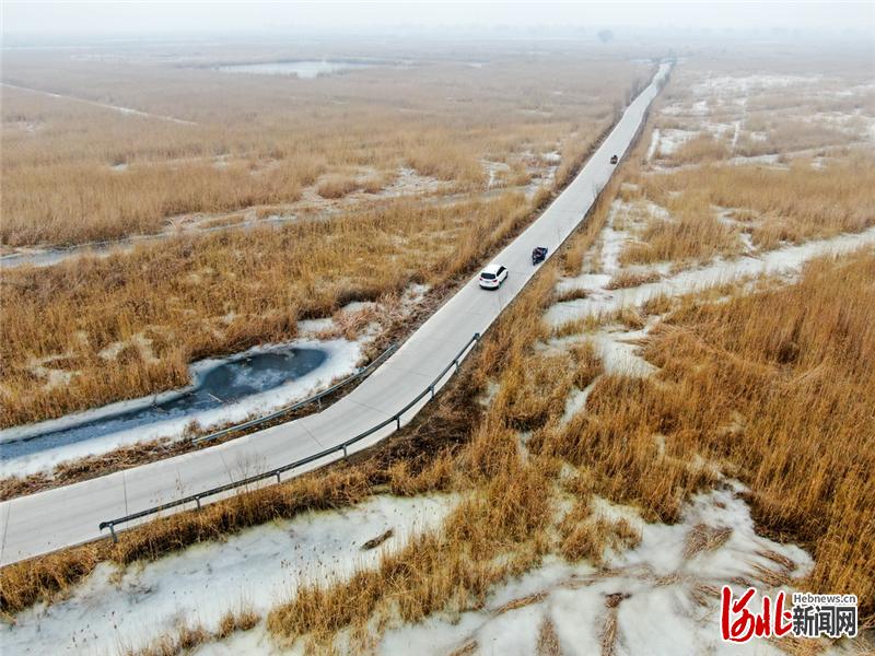 1月5日,雄安新区白洋淀,一辆汽车驶过淀内公路。记者赵杰摄