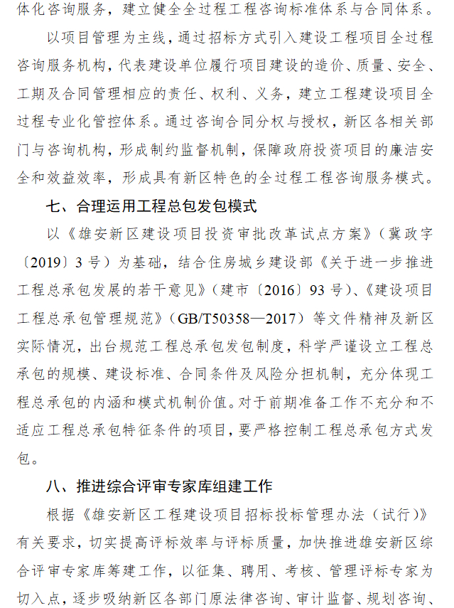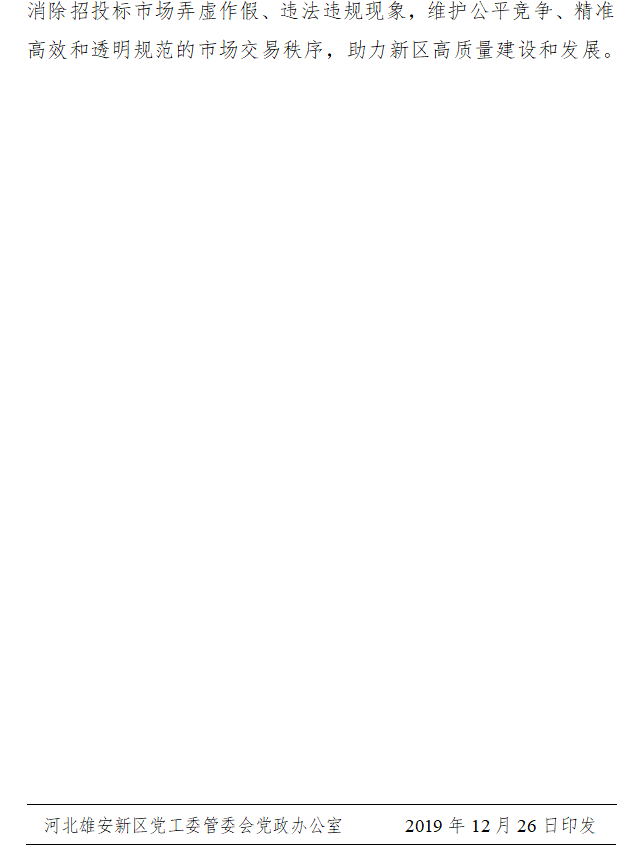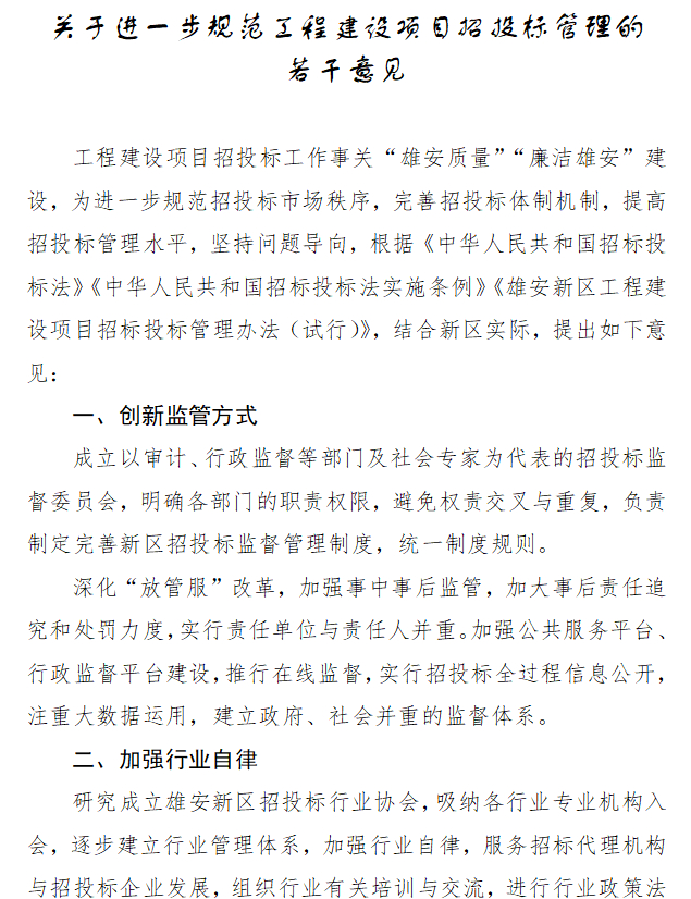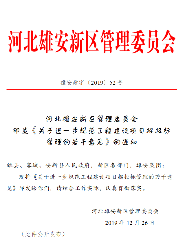 河北雄安新区管理委员会印发《关于进一步规范工程建设项目招投标管理的若干意见》的通知