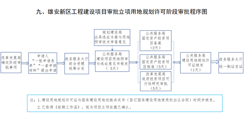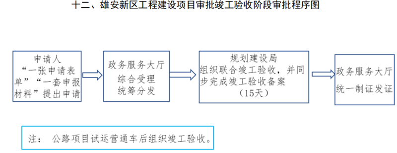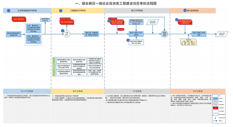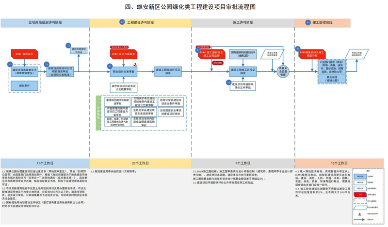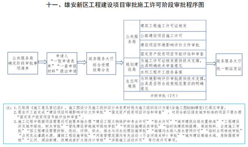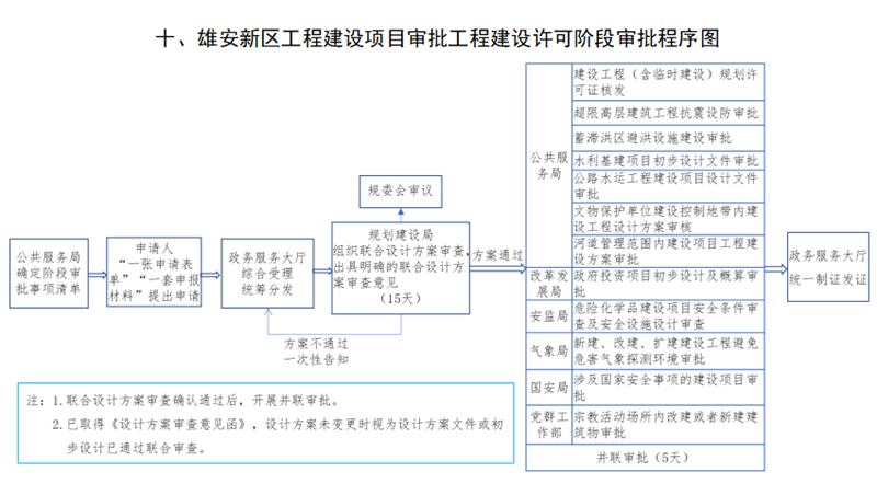 依托雄安政务服务网工程建设项目审批管理平台,按照四个阶段审批,实行“一口受理,一网通办,一次发证”。具体审批程序如下: