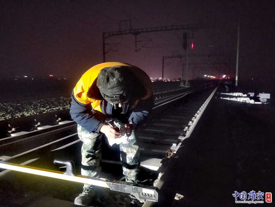 为了保障人员人身安全,铁路工人们只能在“天窗时间”(0:20—4:20)进行作业。据了解,春节期间,为了保障春运安全,仅白洋淀线路车间便安排了9名人员进行春节值班,时刻关注铁路状况,为春运回家路上的旅客铸成一道坚实的钢铁后盾。北京铁路局集团公司保定工务段供图