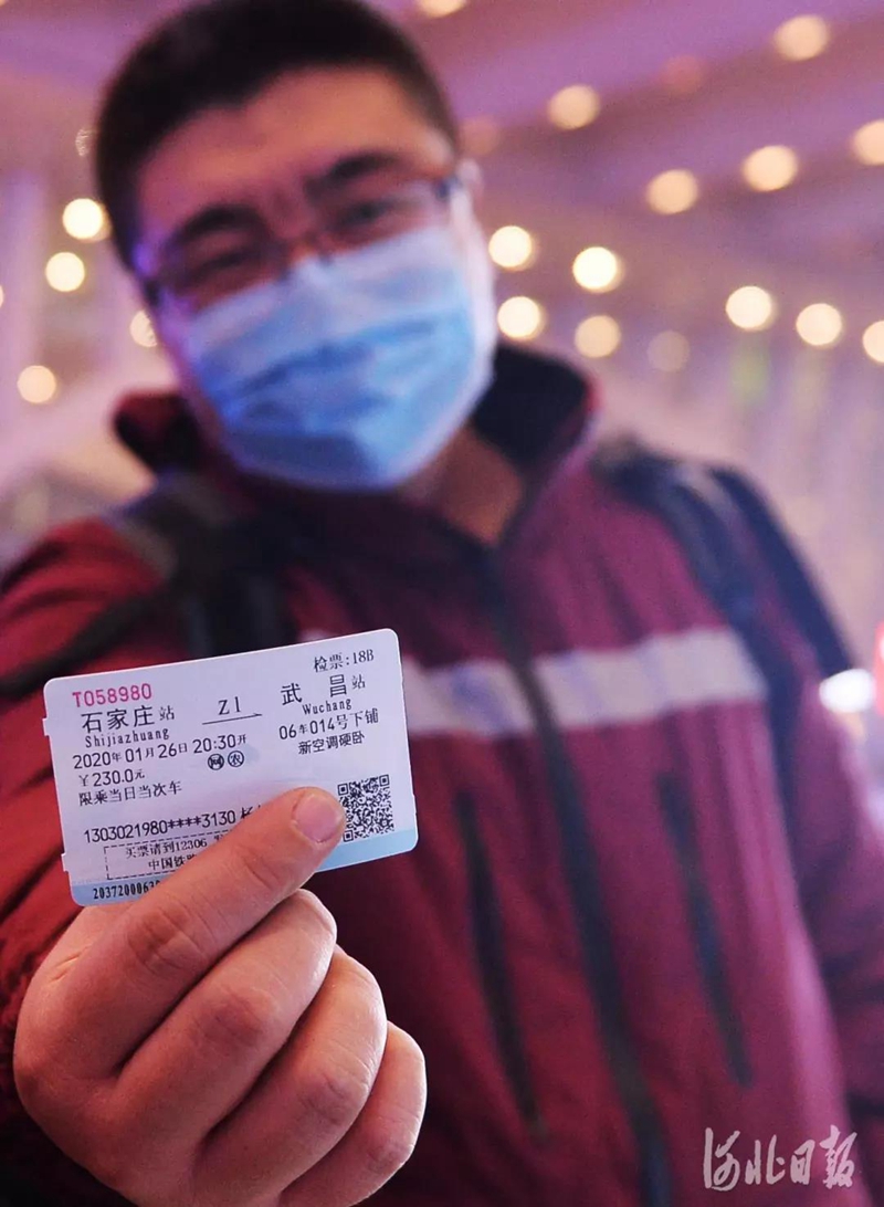 图为医疗队队员展示自己的车票。河北日报记者张昊摄
