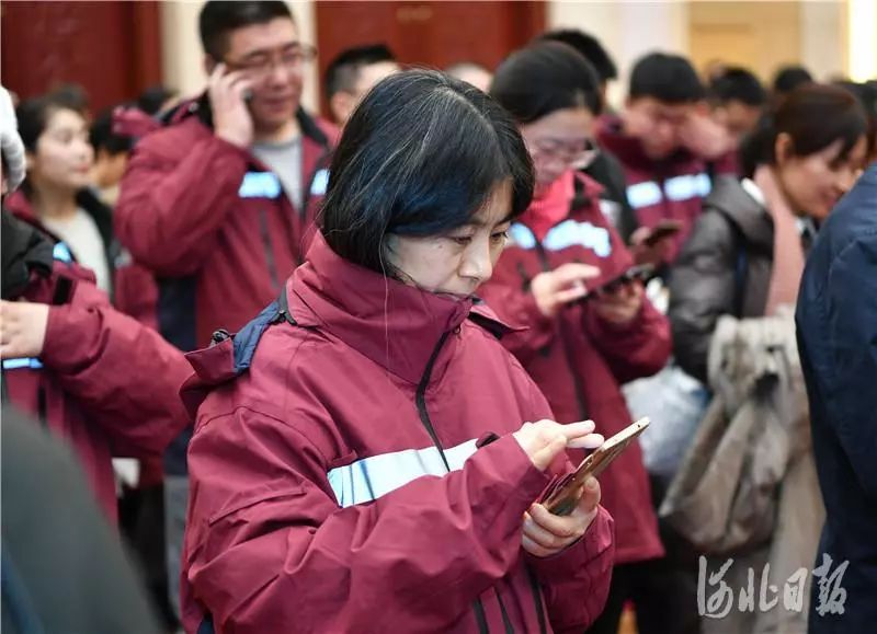 图为医疗队队员在出征前给家人发短信。河北日报记者赵威摄