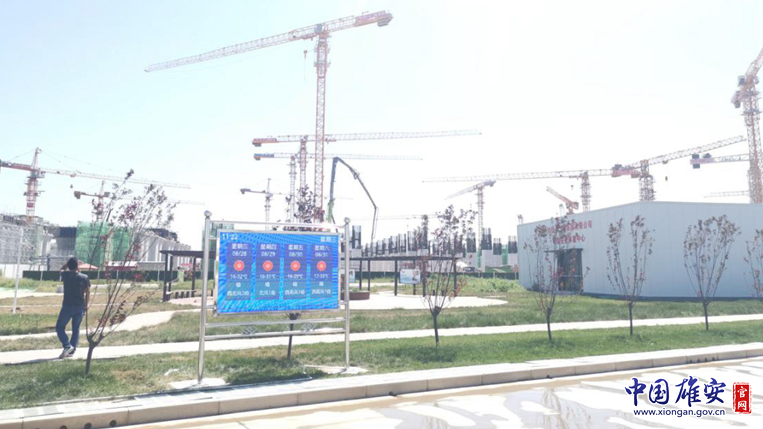 2019年,新区各项重点工程都在紧张有序推进,到处呈现出一派繁忙景象。在京雄高铁雄安站施工现场,一切工作井然有序。项目工地的出入口旁边,悄然树立起一个小型气象观测站,一块彩色的LED大屏实时显示着施工现场的气温、风向风速等气象数据,以及未来三至七天的最新天气预报。当预报未来会有6级以上大风或者35摄氏度以上高温天气发生时,大屏还会以闪烁的方式进行预警,提醒施工人员采取避险防灾措施。这是雄安新区气象局在该工地建设的气象服务系统。