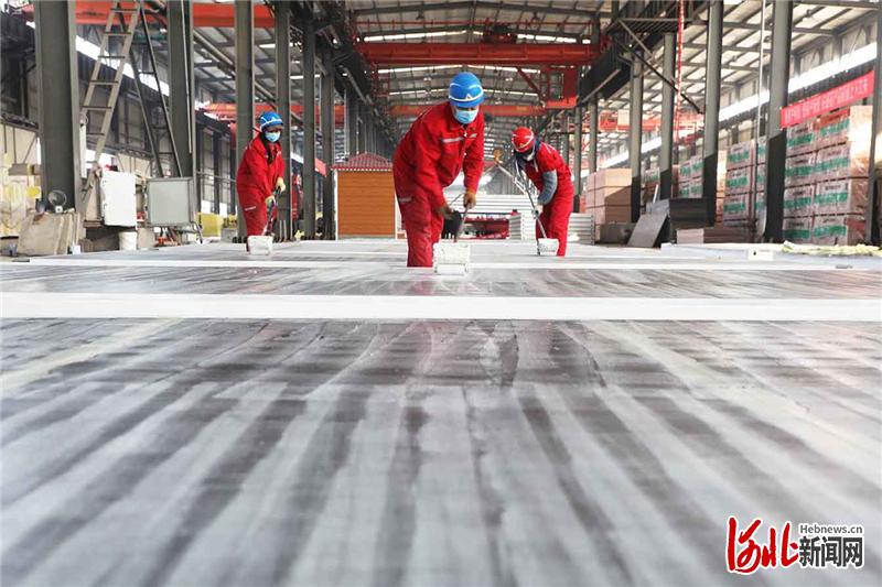 1月31日,位于河北省唐山市丰润区的河北鑫顺鸿源装配式房屋有限公司工人在生产装配式房屋零部件。连日来,该公司加班赶工,保障湖北地区医院建设工作。截至目前,该公司已交付湖北600余套装配式房屋。河北日报通讯员朱大勇 摄