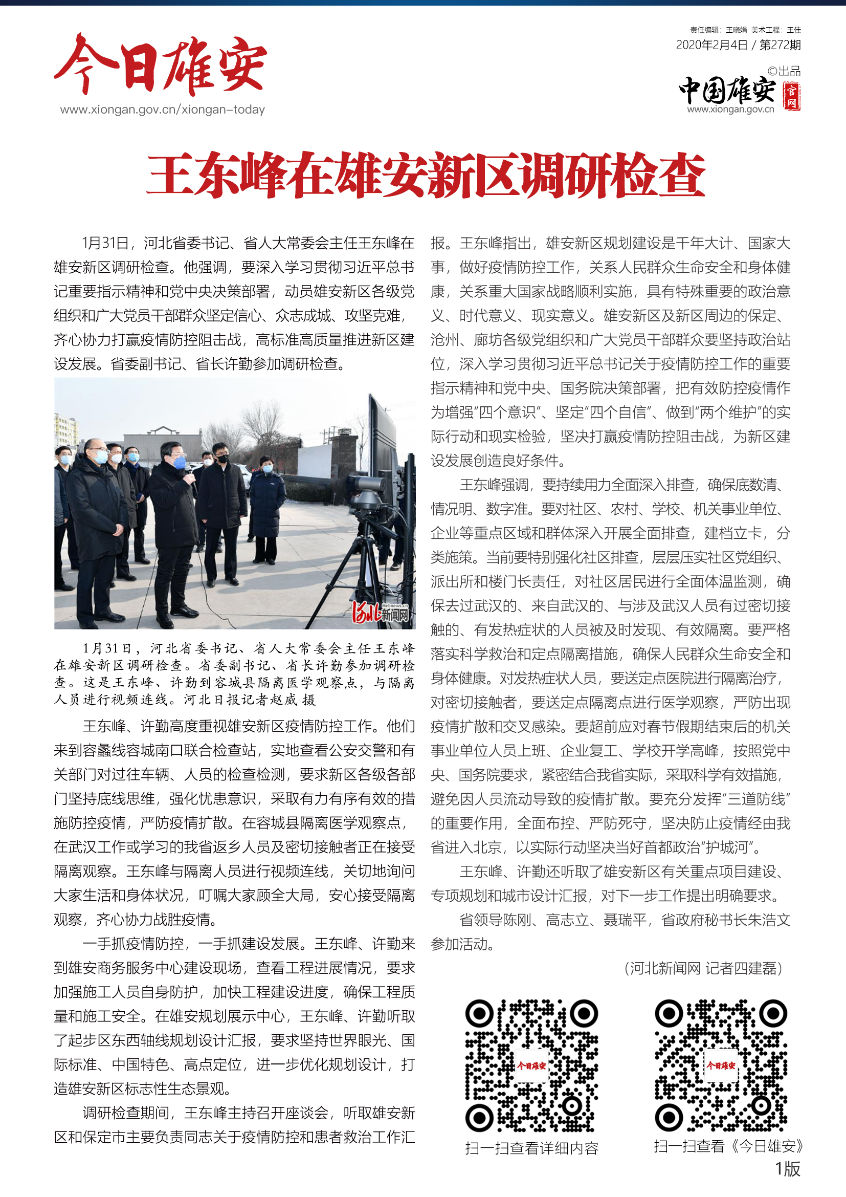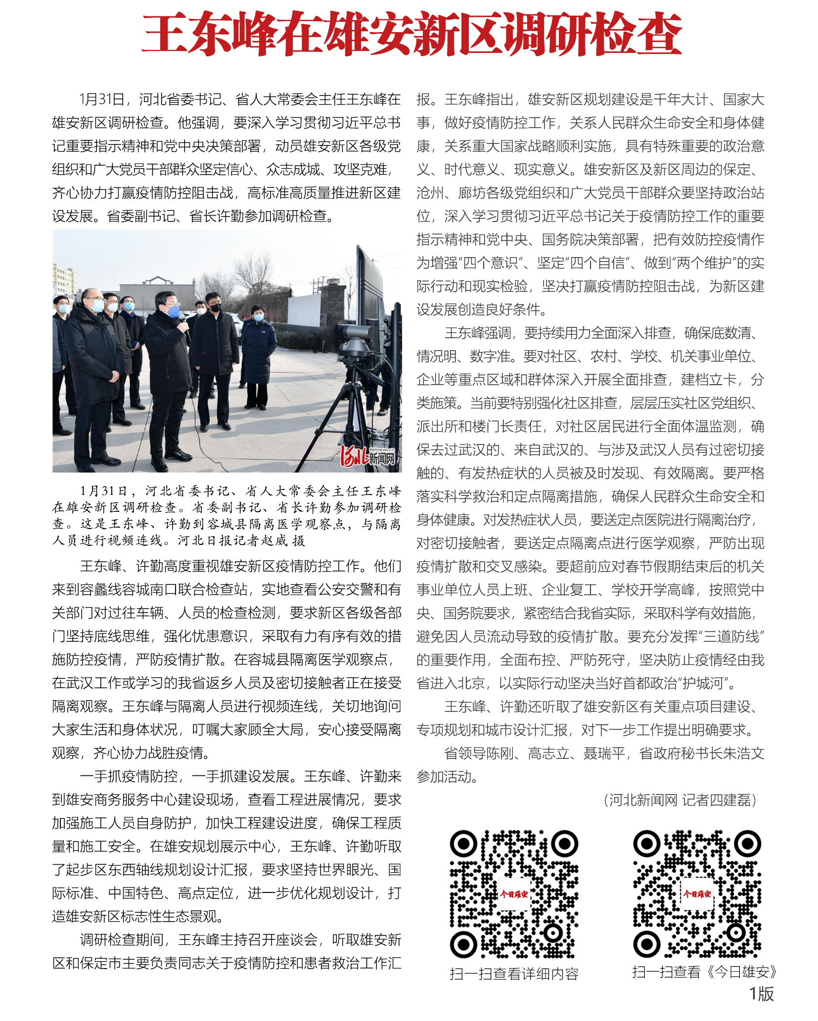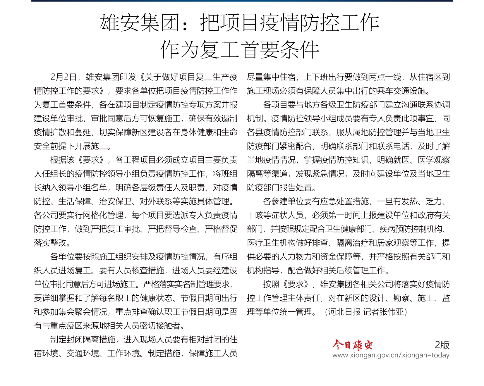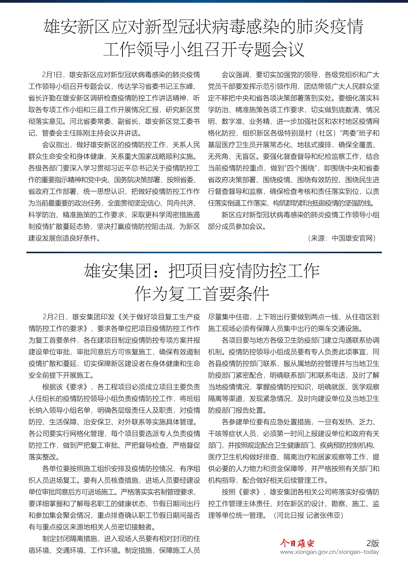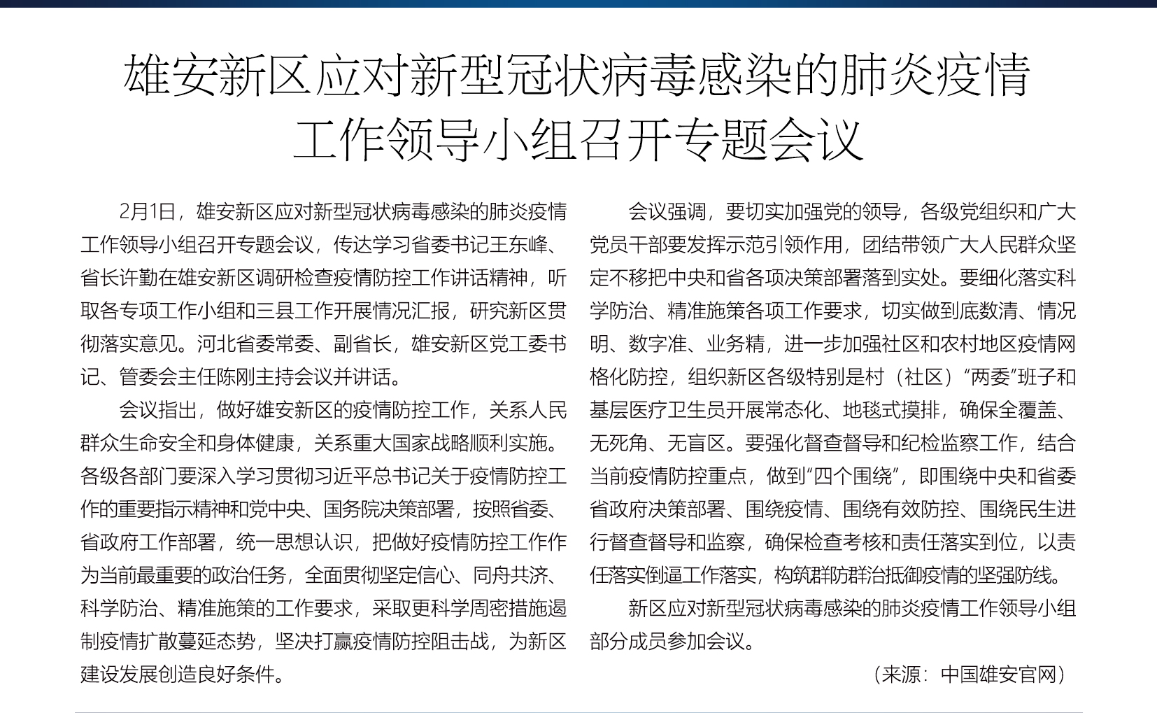 雄安新区应对新型冠状病毒感染的肺炎疫情工作领导小组召开专题会议