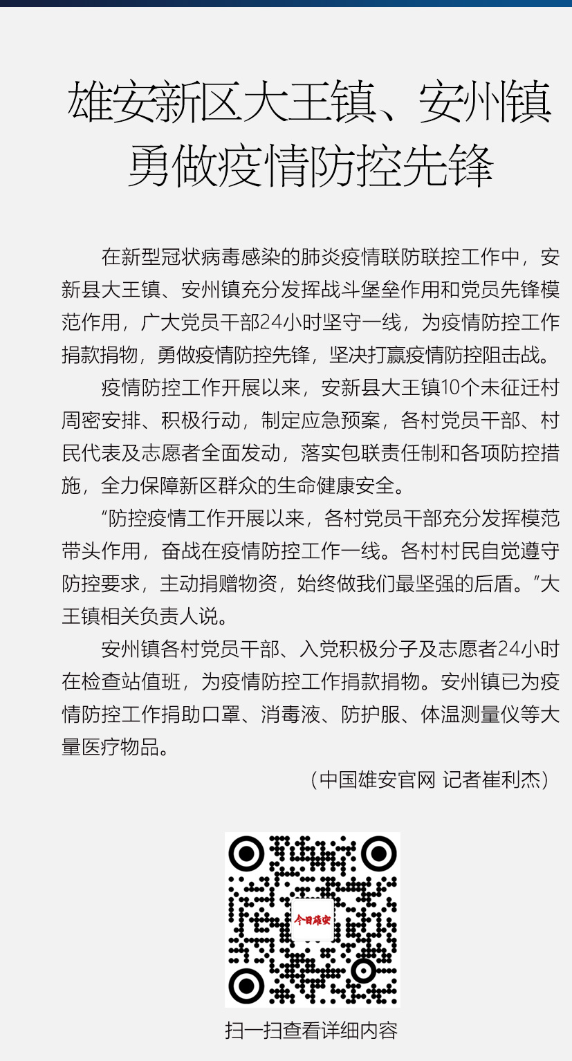雄安新区大王镇、安州镇勇做疫情防控先锋