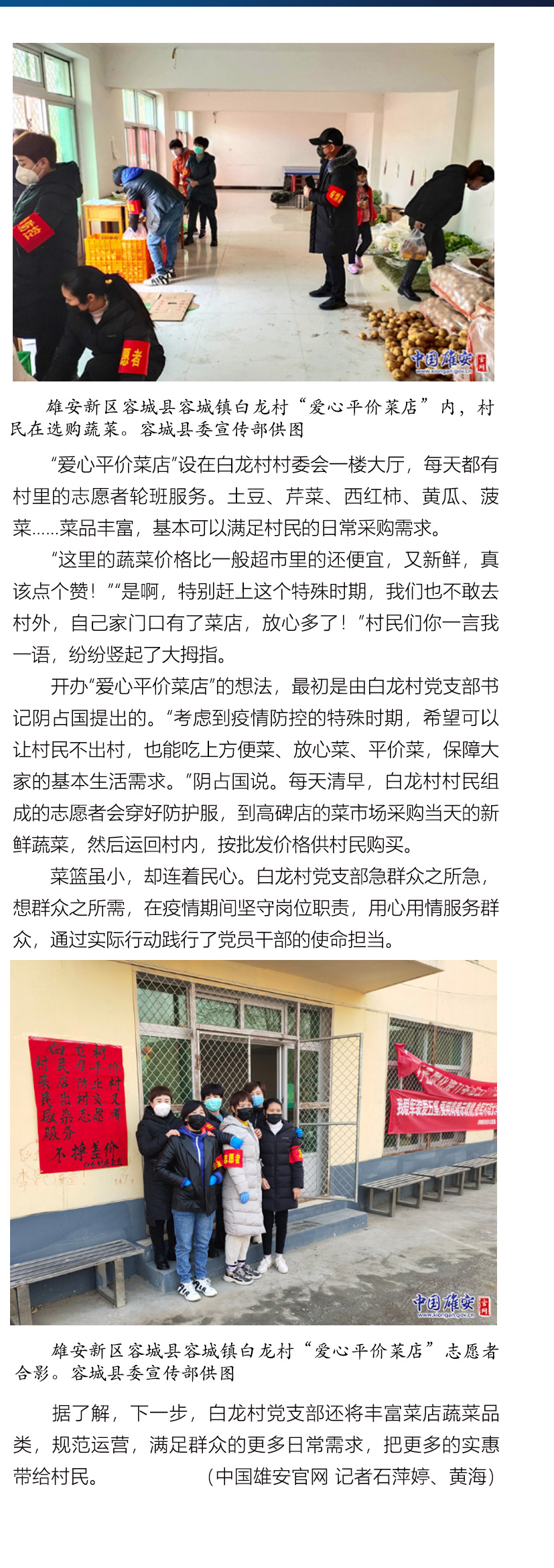 【筑坚强堡垒 做防控先锋】雄安新区容城县白龙村“爱心平价菜店”暖民心