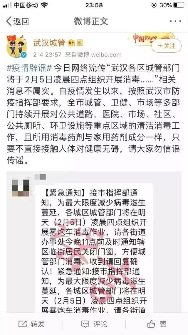 谣言十一、武汉5日凌晨开展雾炮车消毒?