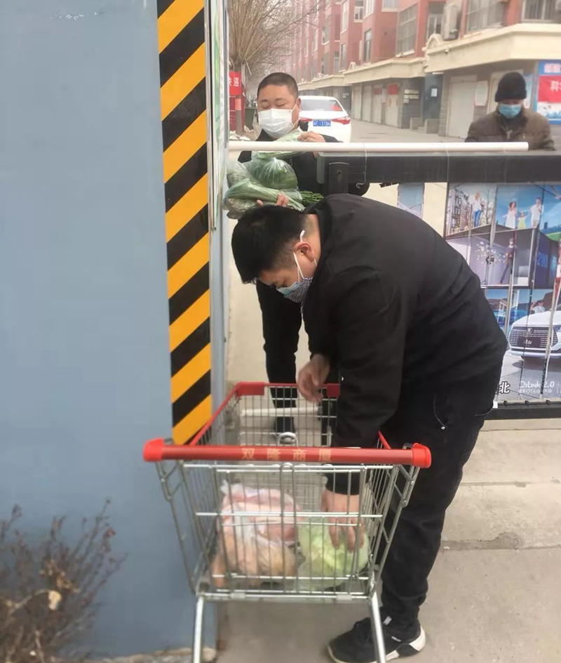 各小区物业建立微信群,通过微信群定时推送蔬菜信息、购物信息,明码标价,统一提供给商超,由商超统一配送。