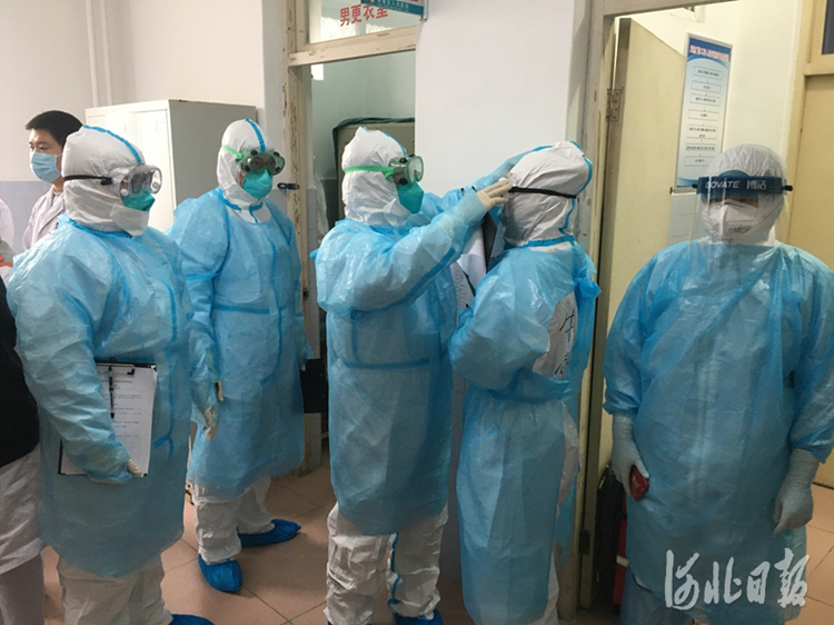 容城县疾控中心流调队员在进入发热门诊前,认真做好防护。河北日报记者张伟亚摄
