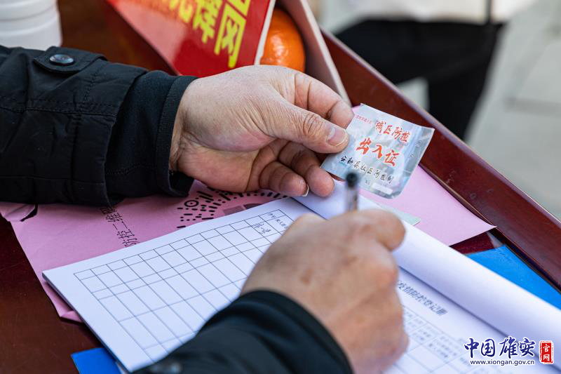疫情防控工作人员为湿地华城小区住户办理出入证。中国雄安官网记者毛鹤然 摄