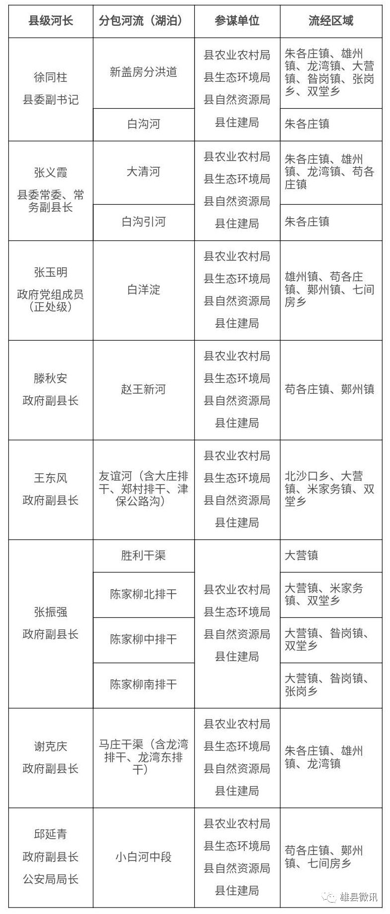 雄县总河湖长及主要河湖及干渠县级河长名单公布啦,一起来看↓↓↓