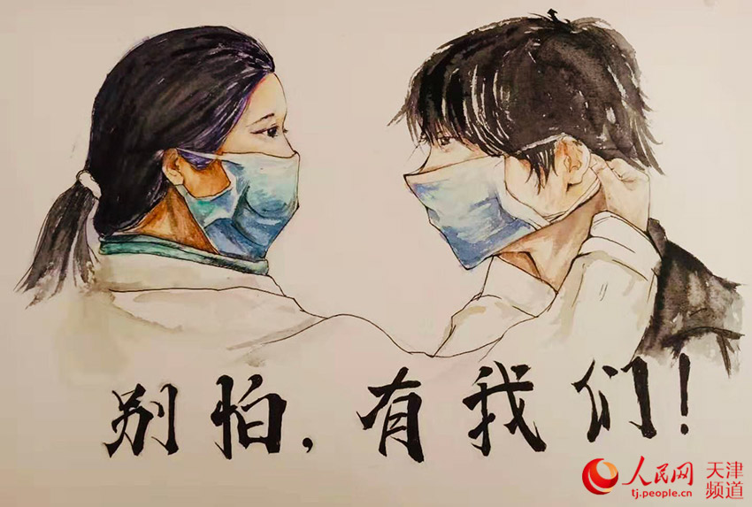 吴坤森作品《别怕,有我们!》。作者希望借此作品为白衣天使们加油,为武汉加油!