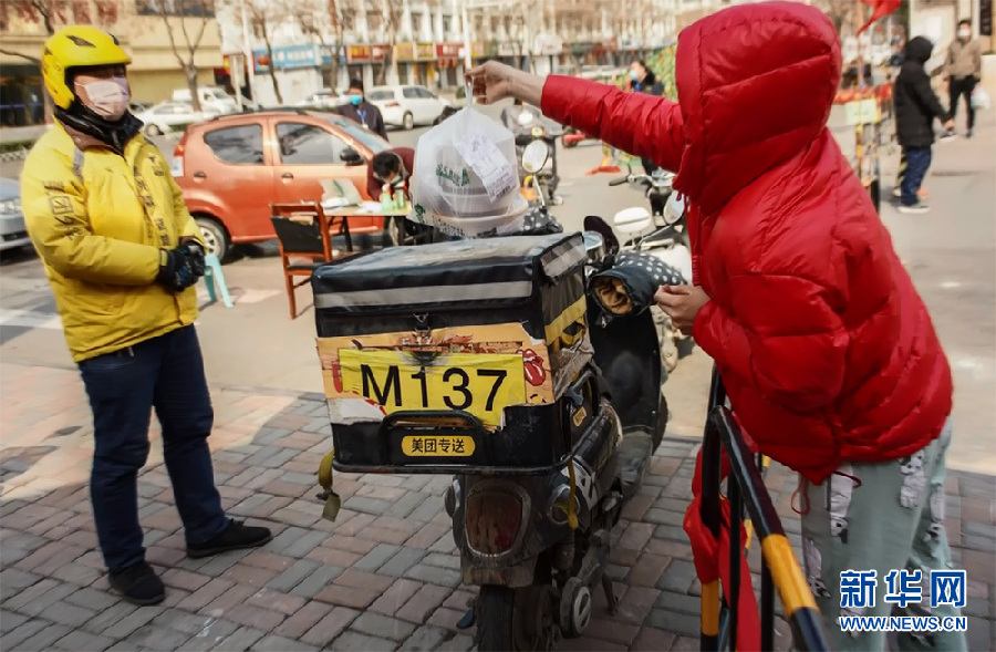 外卖小哥载着热腾腾的午餐在街头穿梭