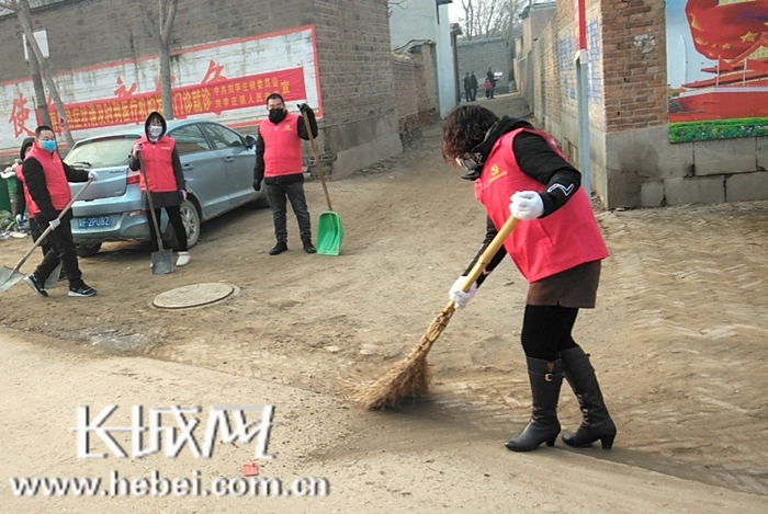 东白庄北队村的志愿者们正在开展春季爱国卫生运动。