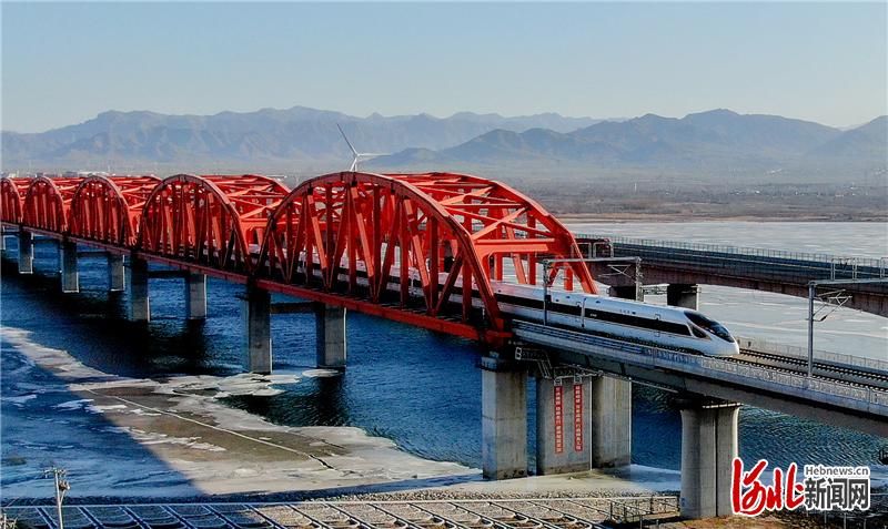 2019年12月30日,一列“复兴号”动车组列车驶过京张高铁官厅水库特大桥。当日,北京至张家口高速铁路开通运营,崇礼铁路同步通车。(资料图)河北日报记者赵杰 摄