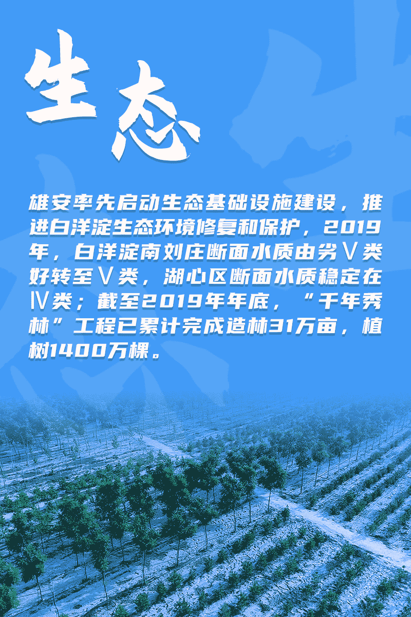 雄安新区设立以来,始终坚持生态优先、绿色发展,先植绿、后建城,大力推进白洋淀生态环境治理,努力建设新时代生态文明典范城市。