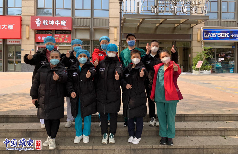 雄安新区支援湖北医疗队到达武汉后的合影。中国雄安官网发
