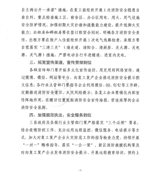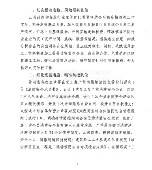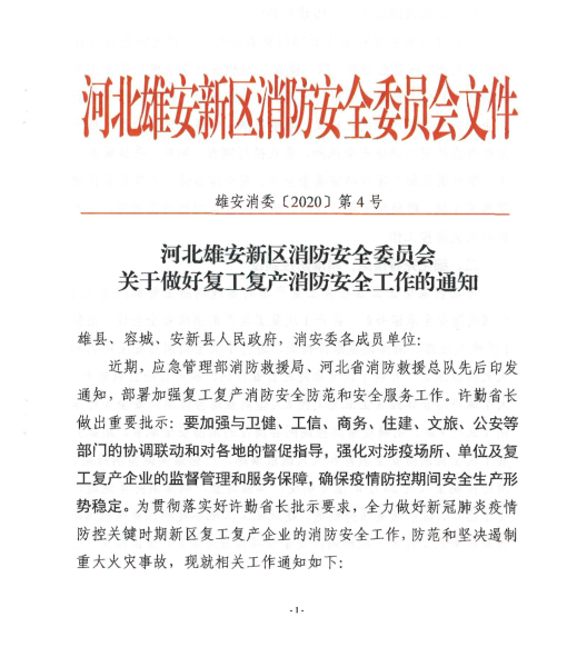河北雄安新区消防安全委员会关于做好复工复产消防安全工作的通知