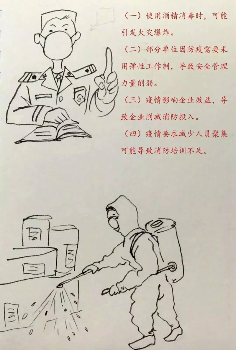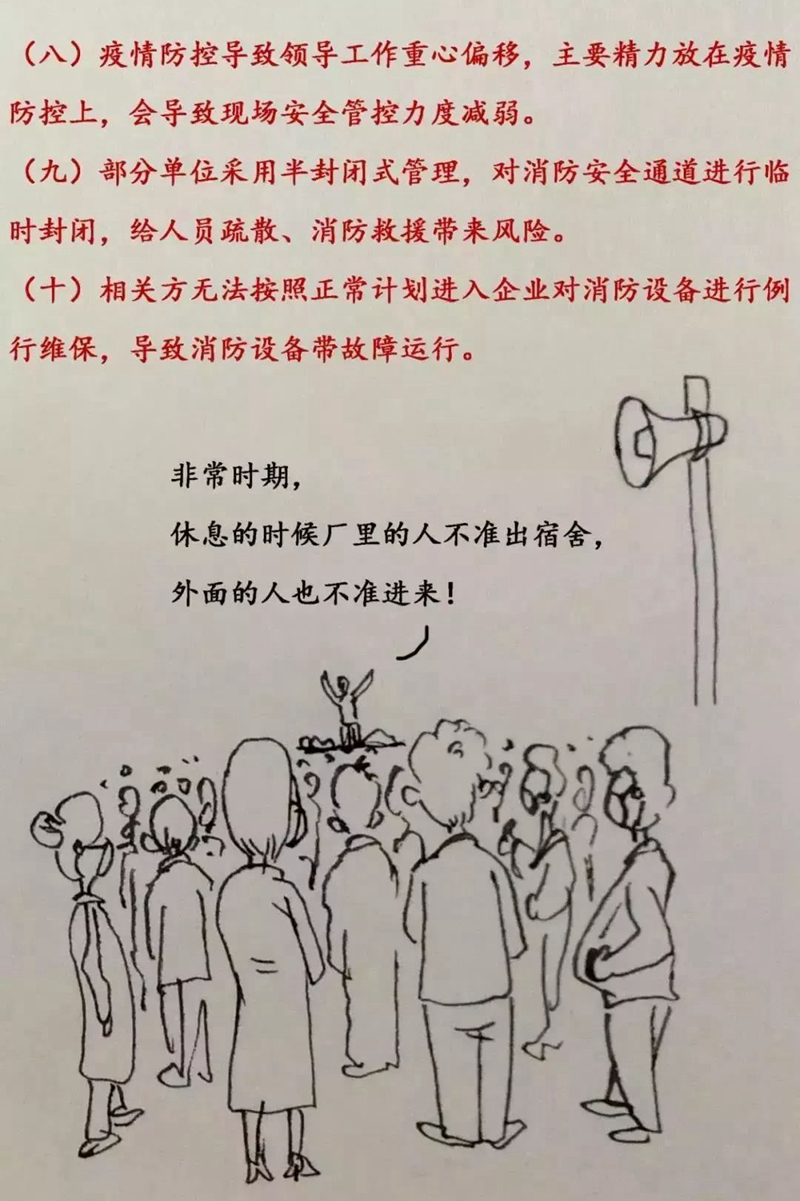 19.及时开展灭火和疏散逃生演练。要结合疫情防控需要,调整制定配套的灭火和疏散逃生预案。及时组织开展灭火和疏散逃生演练,使全体员工掌握基本的灭火、疏散逃生方法,做到有备无患。消防控制室、微型消防站人员及装备不齐的要及时补充。