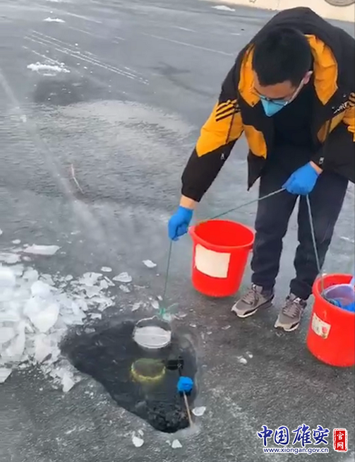 “冰层薄的点位,我们就用采样船人工破冰滑行到采样点,冰层厚的点位,就靠监测人员徒步把设备运进去,把水样背出来。还有一处采样点,船不能行、人不能走,我们用村民的小船连成一道小桥,把采样人员送到点位附近完成了采样任务。”保定生态环境监测中心党总支书记郝广民全程参与了当天的采样工作,“这是我从事环境监测工作十几年来,最惊心动魄的一次。”