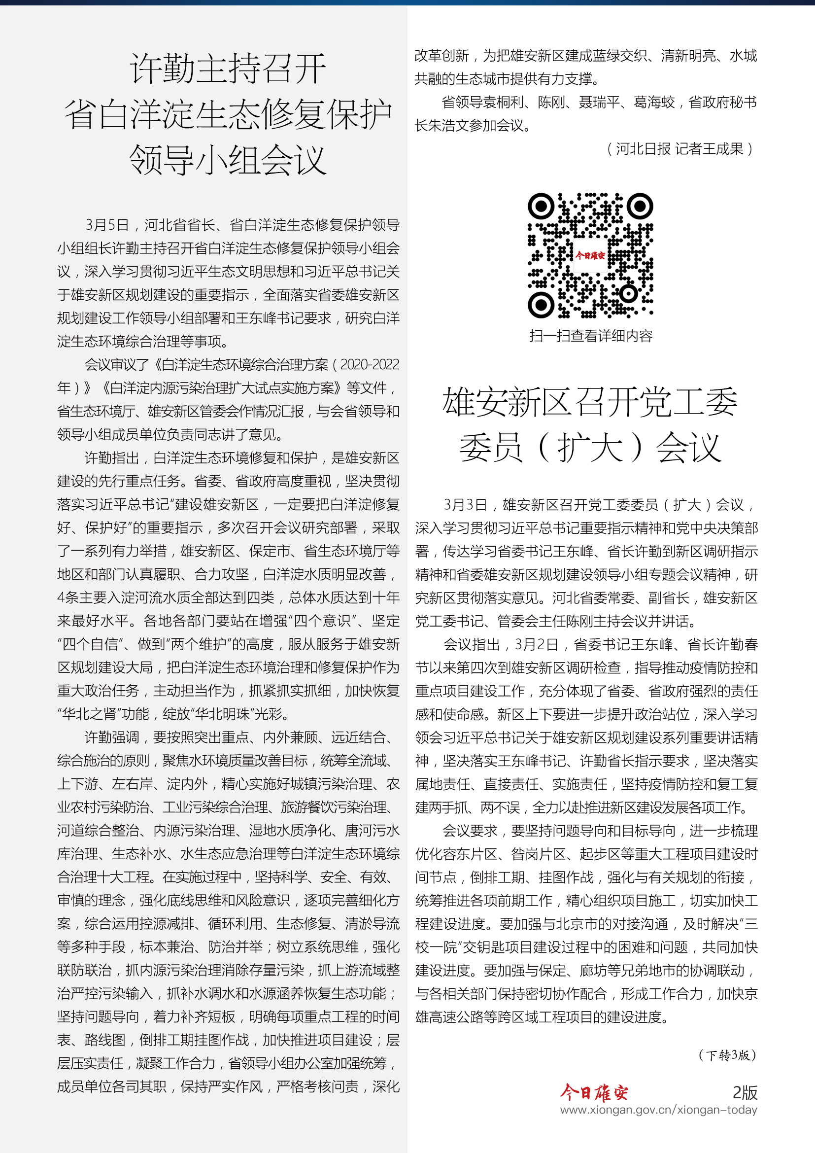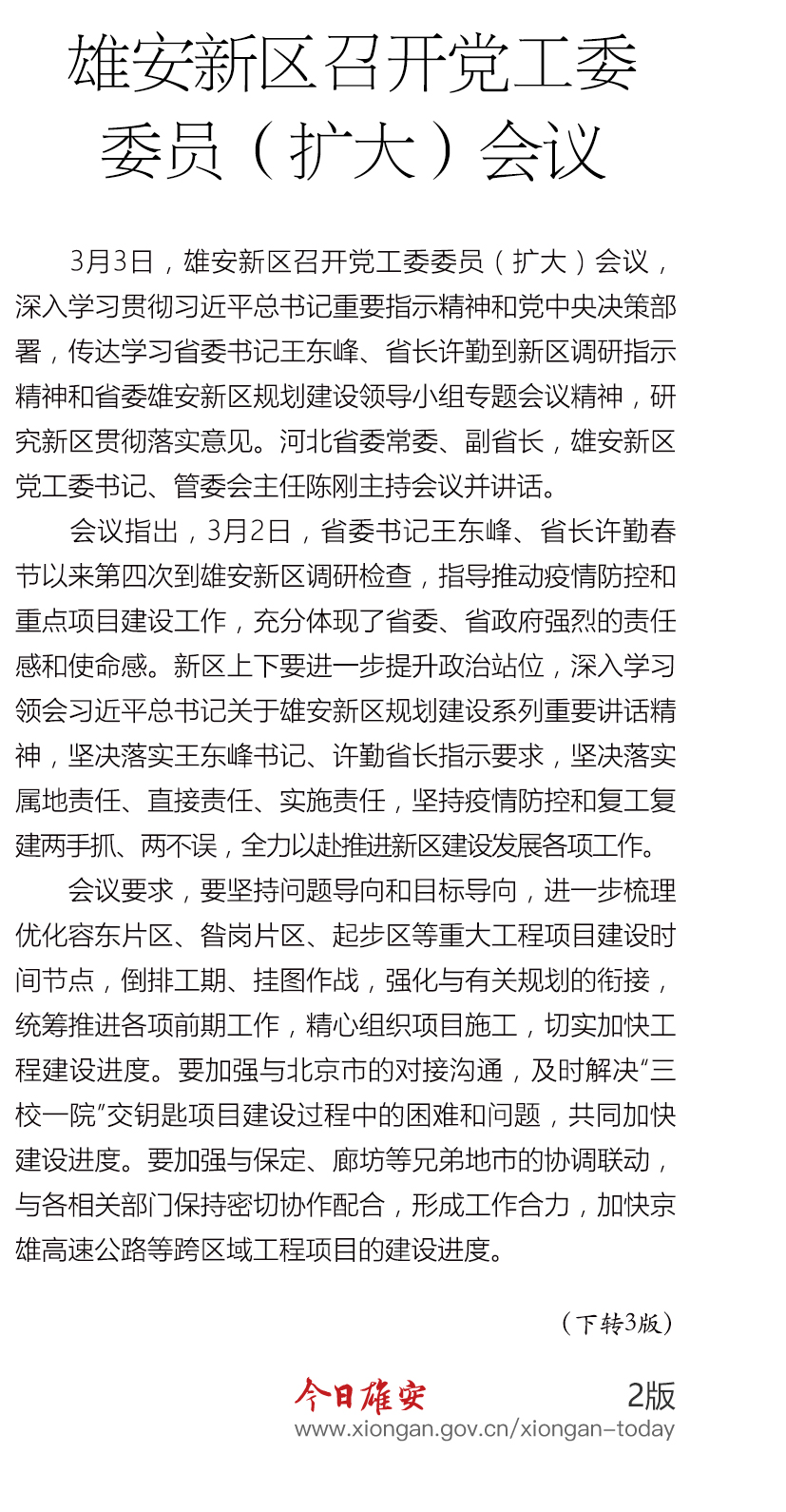 3月3日,雄安新区召开党工委委员(扩大)会议。