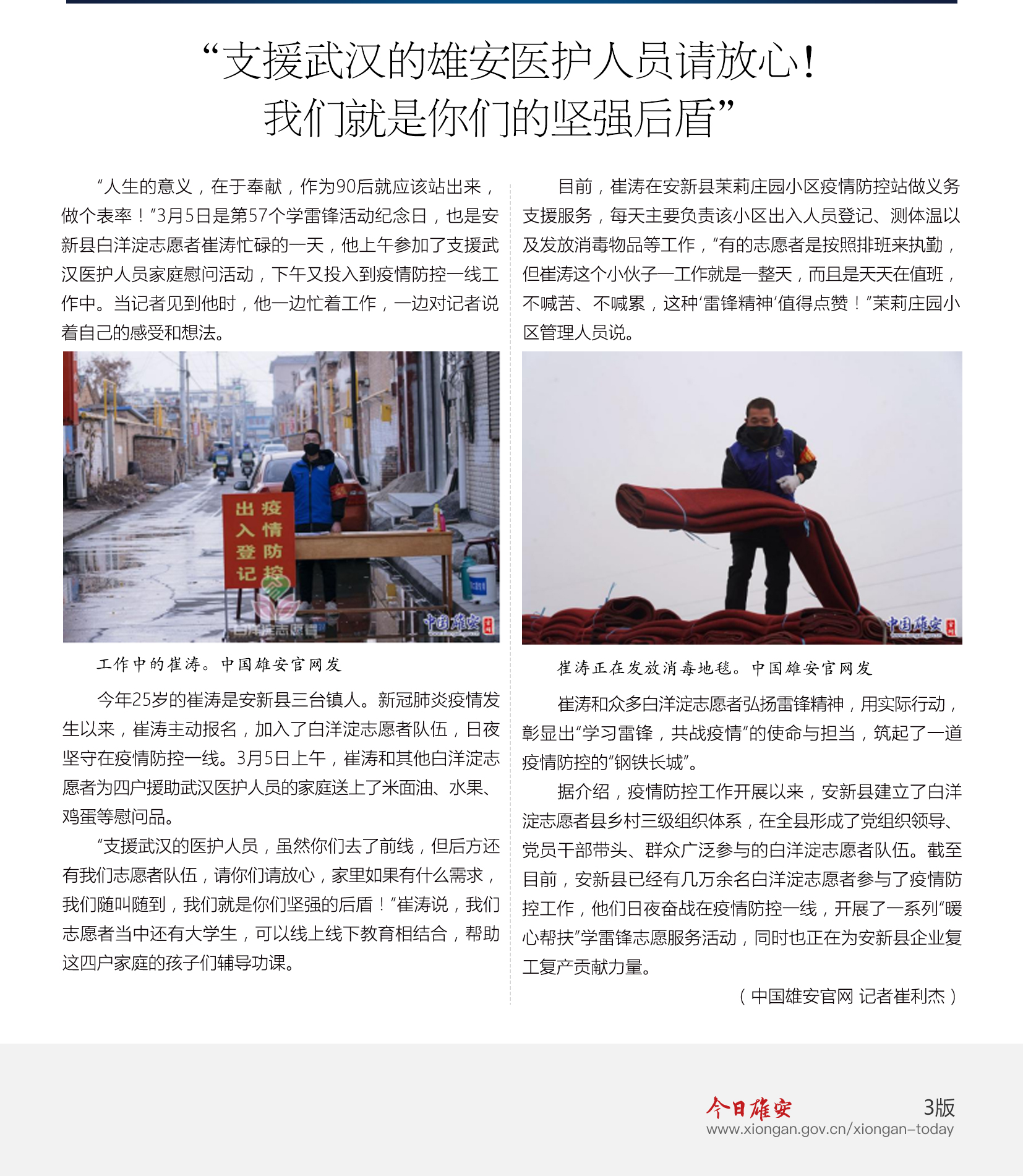 雄安新区发布关于组织开展疫情防控期间“3·5学雷锋志愿服务周”活动的通知