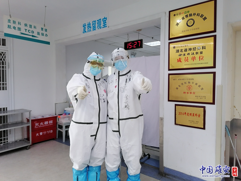 徐天韧:很多事情令我印象深刻,当我刚来到住宿的酒店,有专门的老师为我们培训,教大家正确穿脱防护服。虽然远离家乡,工作很累,但我觉得一切都是值得的。我们一定会把雄安人民对武汉人民的关怀传达到位。