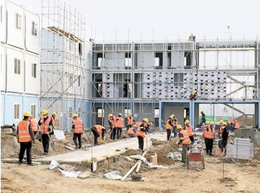 “项目建筑全部采用装配式建造方式,其中公寓、宿舍等建筑采用装配式集装箱结构,办公楼、服务中心采用轻钢结构,职工食堂、餐厅采用装配式钢结构,预计将在3个月内完成全部施工,建成后能满足8000人的入住需求。”项目总工程师颜晓迪表示。(河北日报记者张伟亚)