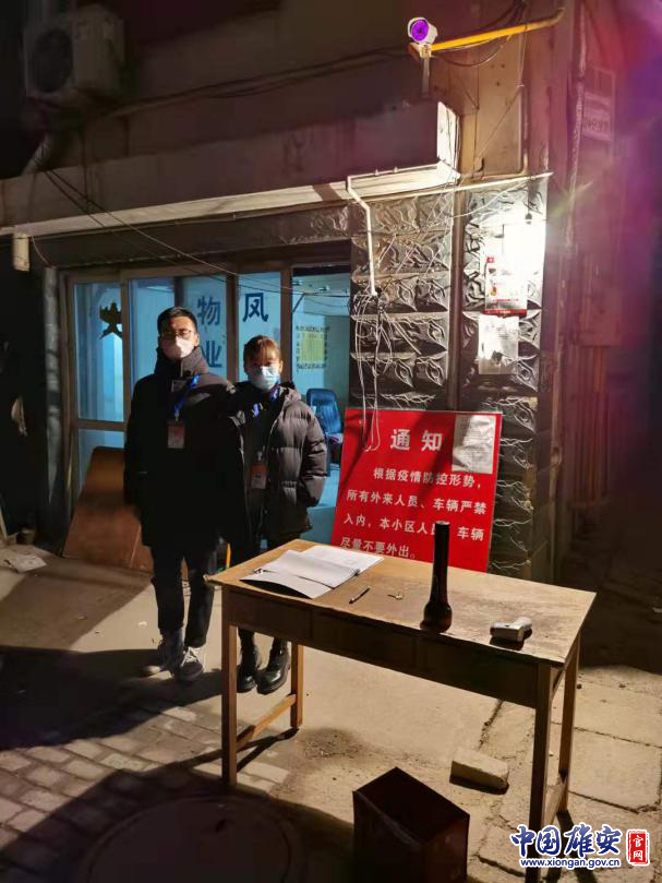 凤阳小区业主孟令辉一家和雄县统战部工作人员一起值守岗位。中国雄安官网发