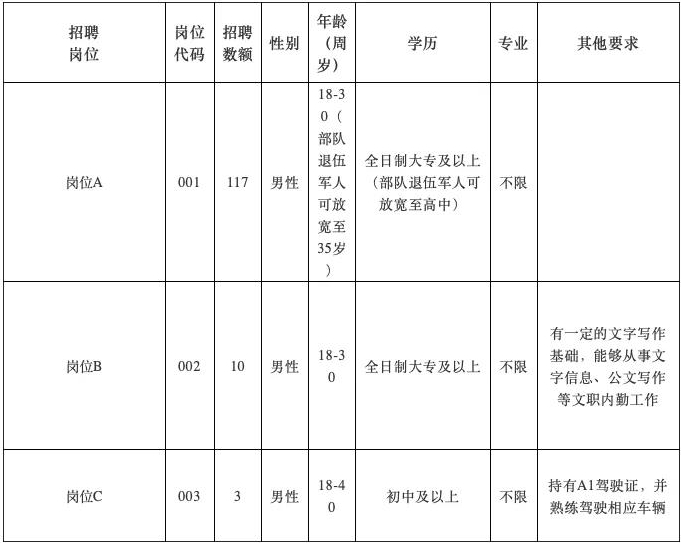 鉴于疫情防控形势,体能测试、笔试、证件审核、面试、体检等时间另行通知。
