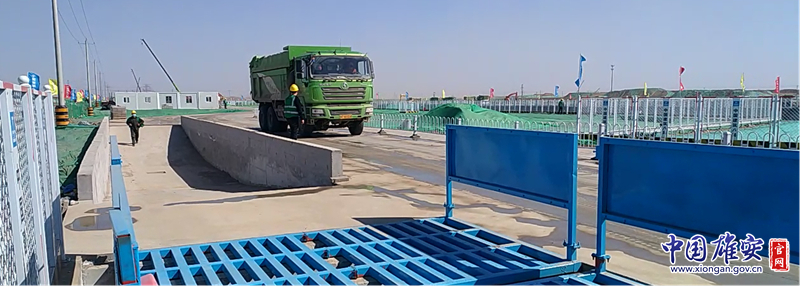 中建八局承建的容东片区D1组团17个地块土护降项目进出车辆冲洗设备闲置。雄安新区生态环境局供图