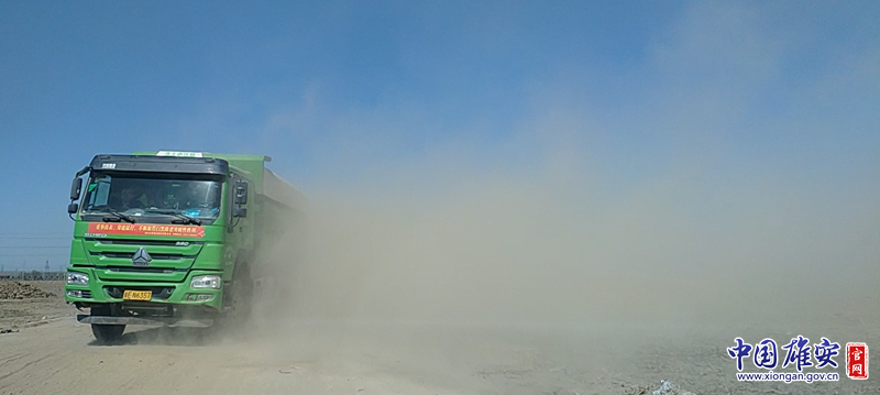 胡村西北临时运输道路扬尘。雄安新区生态环境局供图